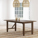 Set the tone in your stylish home with the welcoming ambiance of a modern farmhouse dining table. The rectangular table features a clean, streamlined silhouette complete with a recessed apron and decorative diagonal braces that bring architectural appeal. The table offers a natural wood finish to highlights its beautiful mahogany and rubberwood construction and veneers. The tabletop expands with the addition of the leaf, which measures 18-inches across to add seating for two more of your favorite people. Tapering feet are a subtle finishing touch, defined with linear trim that adds the perfect dose of dimensionality. Key Features: • A rectangular dining table creates inviting ambiance with stylish wood grain and understated design • Straight, square legs feature carved linear accents above tapering feet for a crisp, clean look • Warm natural wood finish highlights simplicity of design and subtle elegance • Table adds classic Americana character with diagonal brace details and stretcher bars between legs • Table features a removable leaf perfect for hosting friends and family or daily use in a large space