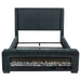 Elevate your bedroom with this sophisticated upholstered bed in a stunning dark blue fabric. Featuring a modern wingback headboard, this bed combines bold style with inviting comfort. The footboard boasts a visual flame box insert for a cozy ambiance, complete with 13 color options, adjustable brightness levels, and a wireless remote control. Crafted from durable birch, plywood, and engineered wood, this bed ensures lasting quality. The integrated Bluetooth speaker enhances functionality, making this bed a modern centerpiece for your space.