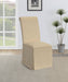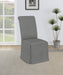 Put a stylish, somewhat formal spin on your dining room decor with a set of two classic parson chairs. Each features a tall back with an armless profile for impeccable comfort and elegance. The chair features plush foam padding, complete with neutral upholstery for a fresh, inviting presence at your dining table. The chairs showcase fully skirted silhouette, adding a touch of flowing movement. Tall, rolled backs ensure supportive seating for friends and family, wonderful for daily and occasional use.