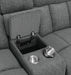 If you've ever dreamed of a movie theater experience in your living room, this three-recliner sofa just may be the answer. It features three recliners, each separated with a storage console that adds a pair of cupholders for fingertip accent to your favorite beverage. Stash charging cables, remotes and more in the consoles for easy access and a tidy space. On each end of the sofa, an extra-thick pillowtop armrest is perfect for curling up. The sofa features plush cushions and supportive seating, all in charcoal gray upholstery that adds neutral color to complement surrounding decor.