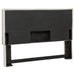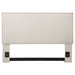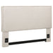 Inspire modern artistry in a contemporary bedroom space with a headboard that shines as a focal point. This updated headboard creates a mix of clean lines and tempting upgrades to transform a bedroom into a haven for relaxation. Versatile and timeless, flange details dress up the outer border, adding a dimensional effect. Textured sand finish fabric wraps over the headboard to deliver a light essence and a palette that accommodates a variety of options for matching case pieces, beds, and accessories. Constructed of pine wood.