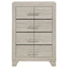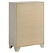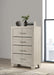 This four-drawer chest offers a stylish combination of rustic charm and modern design, making it a perfect storage solution for contemporary bedrooms. Finished in a rustic cream with rough-sawn, white-washed engineered paper veneer, it has a warm, textured appeal that’s both inviting and chic. The extra-wide polished nickel handles add a sleek, modern touch, creating a subtle contrast. Built with engineered wood, the chest features English dovetail joinery and Center metal glides for durability and smooth functionality, ensuring it meets both aesthetic and practical needs. Key Features: • Rustic cream finish with rough-sawn, white-washed engineered paper veneer • Four spacious drawers with durable English dovetail joinery • Extra-wide polished nickel handles for a sleek, contemporary look • Smooth Center metal drawer glides for easy access • Crafted from engineered wood for stability and style • Ideal for adding storage and style to modern bedrooms