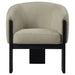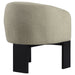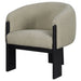 Bring updated style and sophistication to your living room or den with a modern accent armchair. It boasts an inviting rounded silhouette with sloping arms. Three legs in a black finish add a sculptural sensibility. Textured boucle upholstery creates rich texture and depth, perfect for entertaining or lounging. Enjoy the plush softness of foam cushions in any setting.